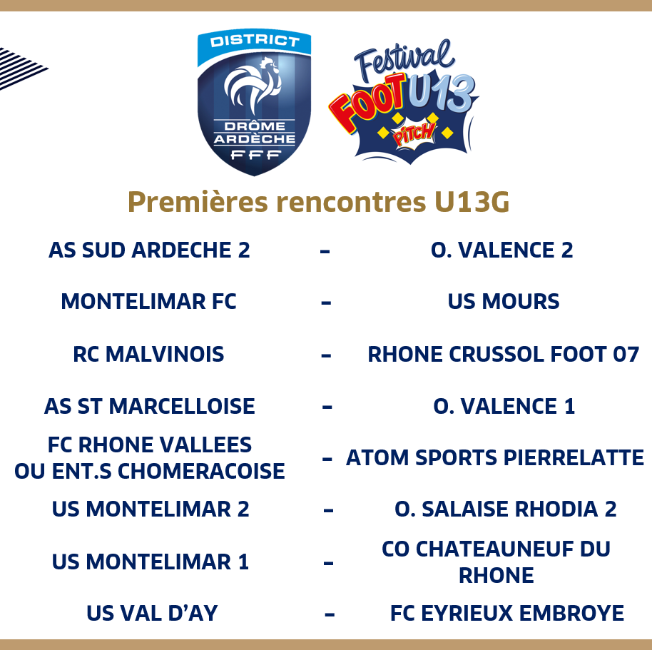 16 équipes de Garçons et 9 équipes Féminines seront en lice pour déterminer les représentants du District Drôme-Ardèche de Football (2 équipes Garçons et 1 équipe Filles) à la Finale Régionale.