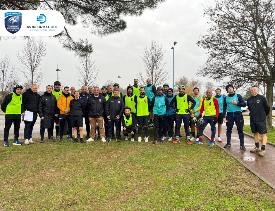 Ensuite, une activité cohésion était proposée. Une boucle de 7.7 km à parcourir en binôme. Mais subtilité, il s’agissait d’un « Run&Bike ». Merci aux arbitres blessés pour leur participation à l’organisation. A ce titre, la Commission Départementale de l’Arbitrage (CDA) et le District Drôme Ardèche de Football remercie DIS Informatique pour la participation financière à l’activité.