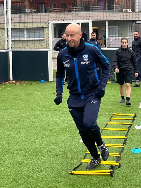 Le Samedi 17 Janvier 2026 marquait la date de recyclage des arbitres séniors D1 et D2. Réunis dès 8h au Stade des Combes de Guilherand-Granges, les arbitres ont réalisé une séance terrain, avec une partie échauffement, axée sur la coordination motrice, pour le plus grand plaisir du staff et de leurs collègues. Puis deux exercices, un sur le placement et déplacement, sur coups de pieds arrêtés et l’autre sur le déplacement dans la diagonale à proximité de la surface de réparation, lieu clé d’une rencontre.